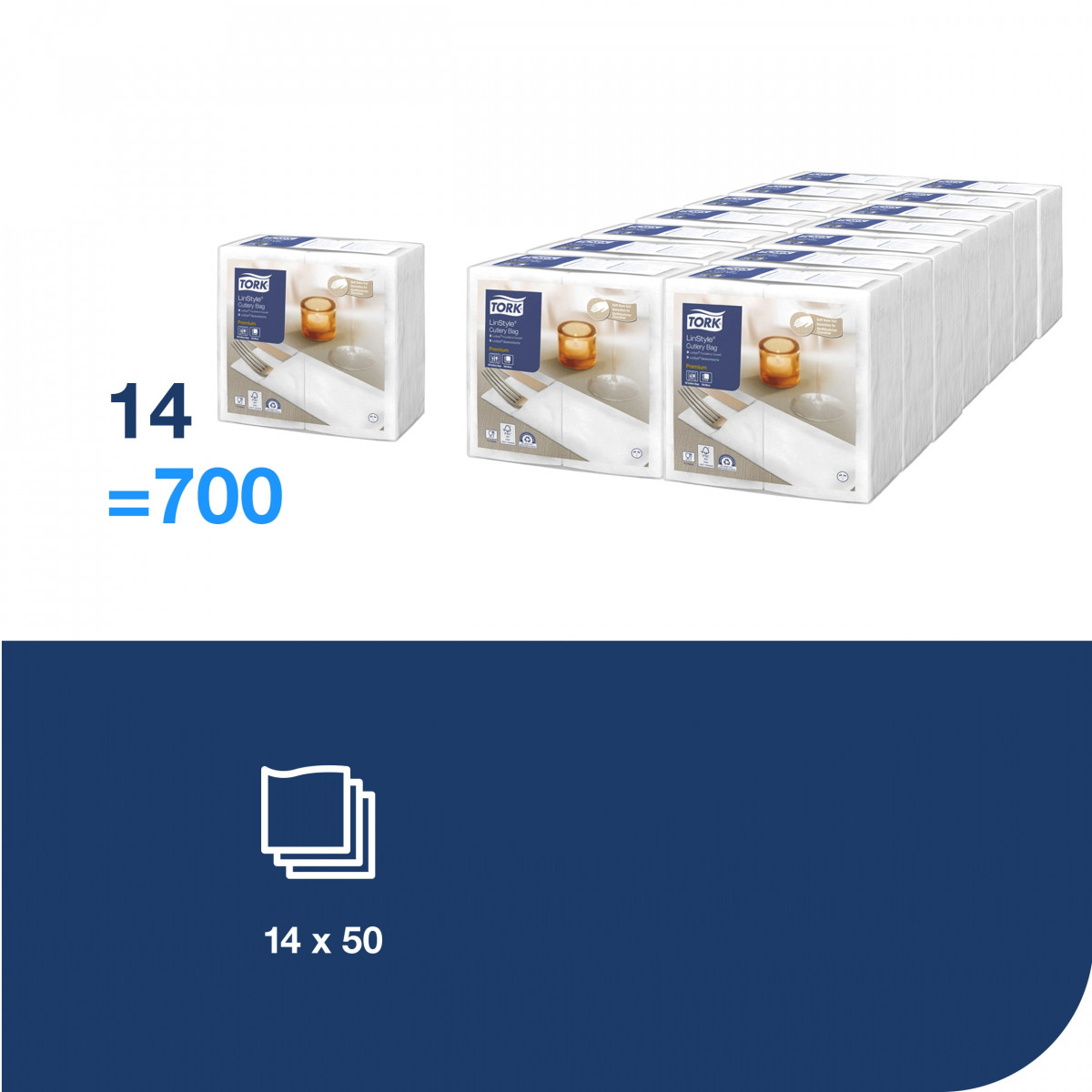 Stalo įrankių vokeliai-servetėlės Tork LinStyle, balti, 50vnt., 509608