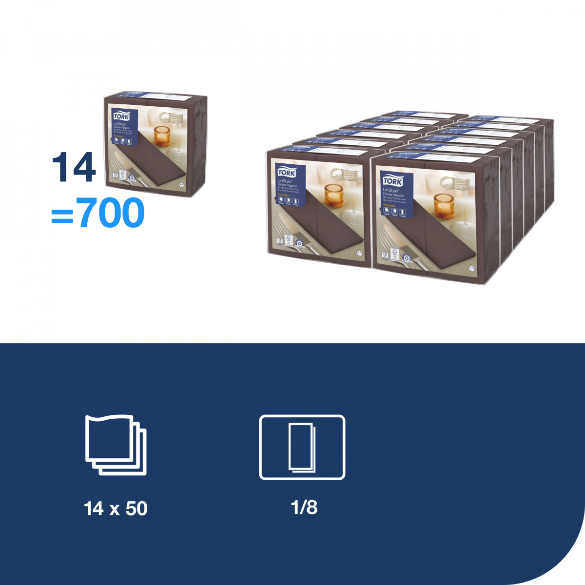 Stalo servetelės Tork Premium LinStyle, 39x39cm, sulankstymas 1/8, kakavos spalvos, 1sl., 478192