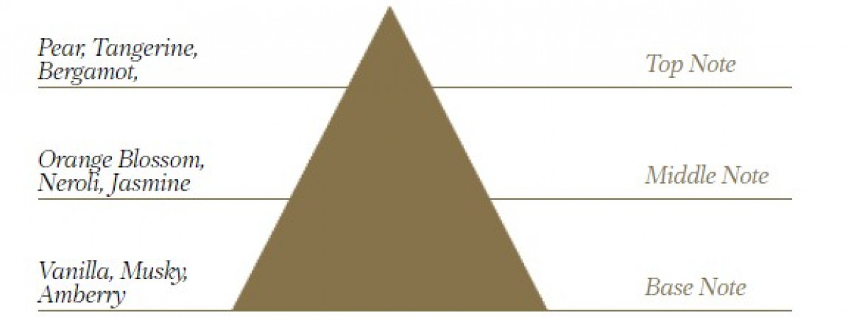 Kvapo natos: kriaušė, mandarinas, bergamotė, apelsino žiedai, jazminas, vanilė, muskusas, gintaras.