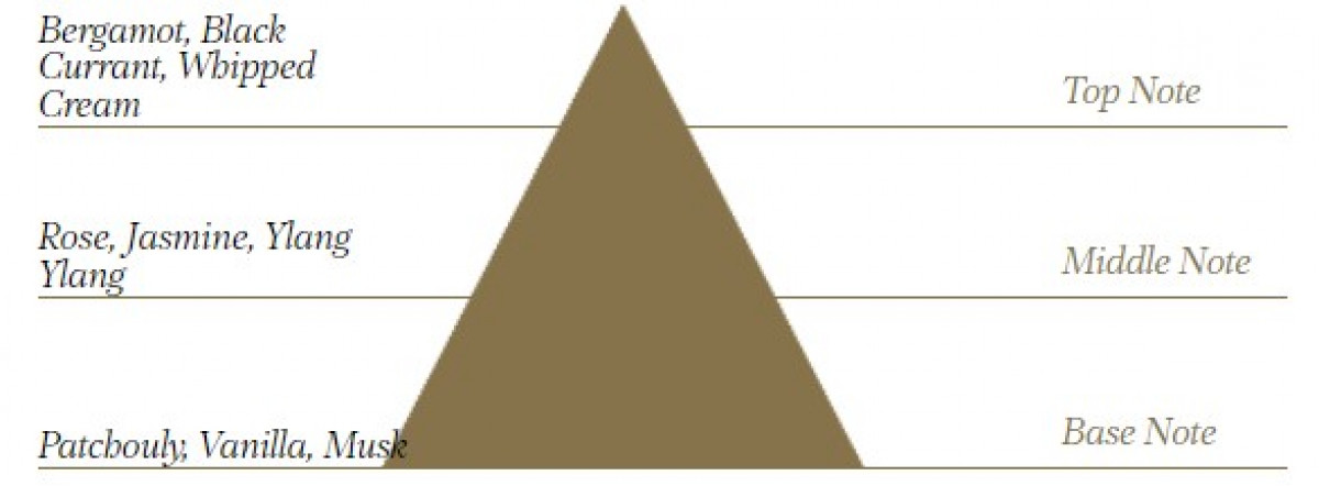 Kvapo natos: bergamotė, juodieji serbentai, plakta grietinėlė, rožė, jazminas, ylang-ylang, pačiulis, vanilė, muskusas.