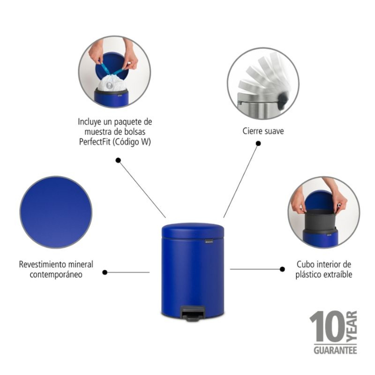 Šiukšlių dėžė atidaroma koja Brabantia NewIcon, tamsiai mėlyna, 5l, 206849