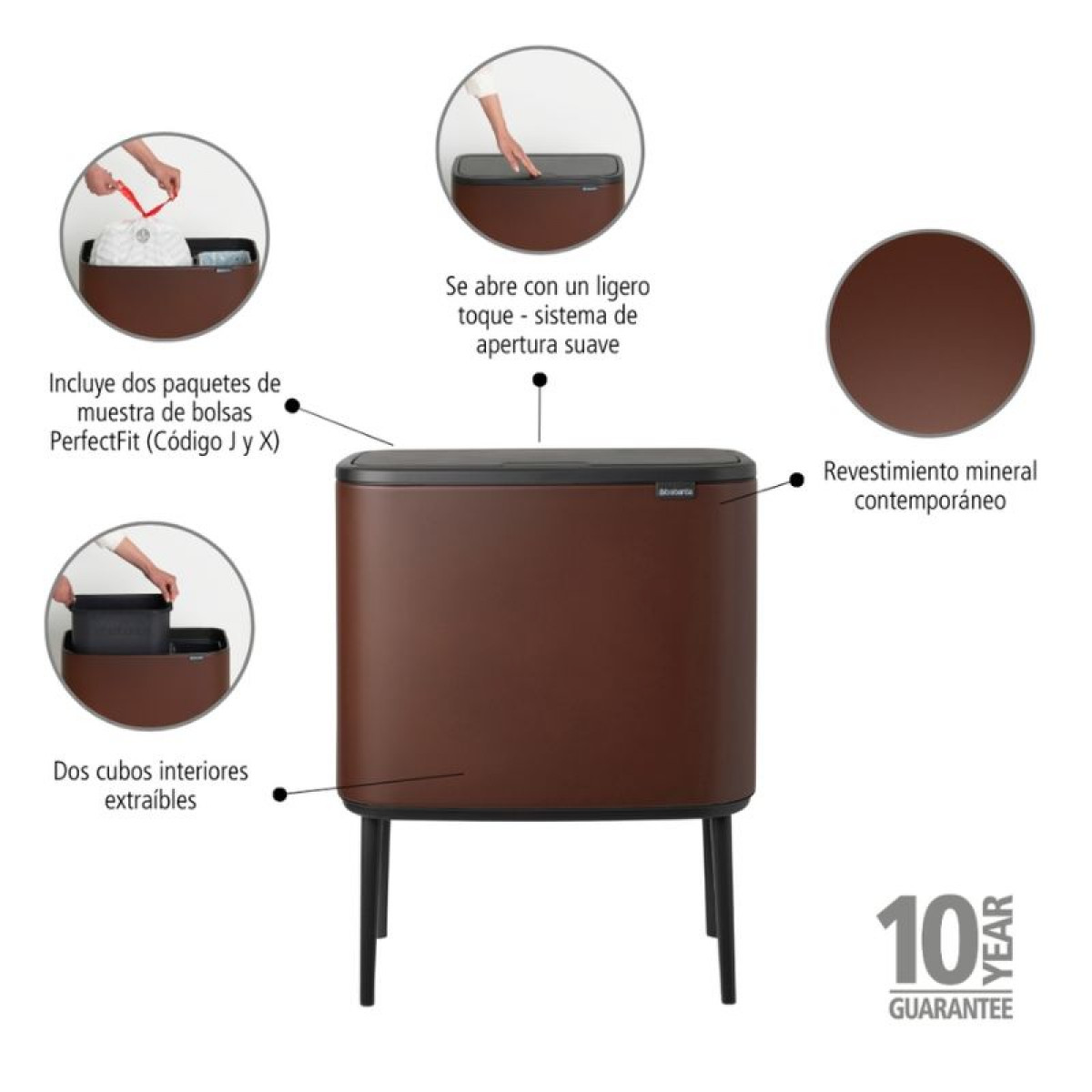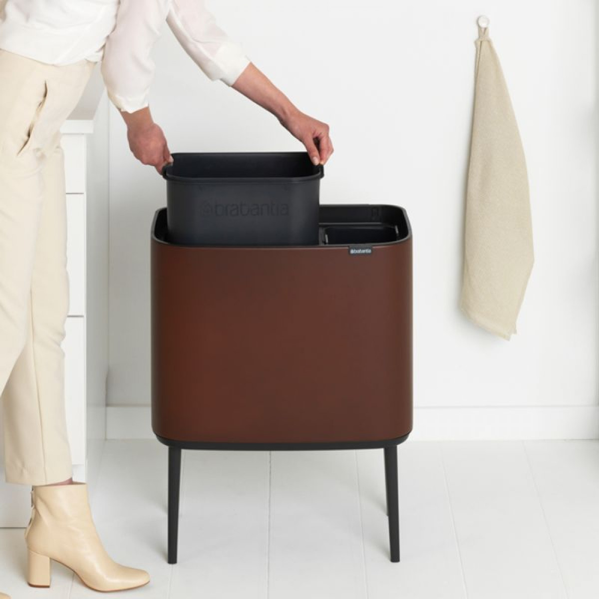 Šiukšlių dėžė Brabantia Bo Touch Bin, tamsiai ruda, 11+23l, 208621