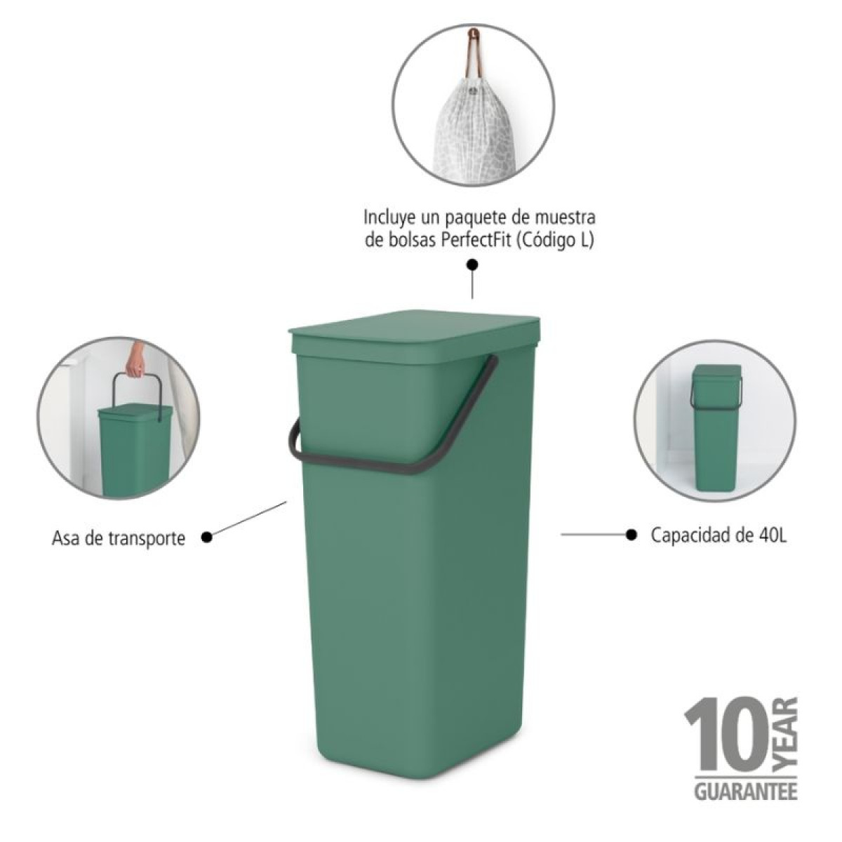 Šiukšlių dėžė Brabantia Sort&Go, žalia, 40l, 251023