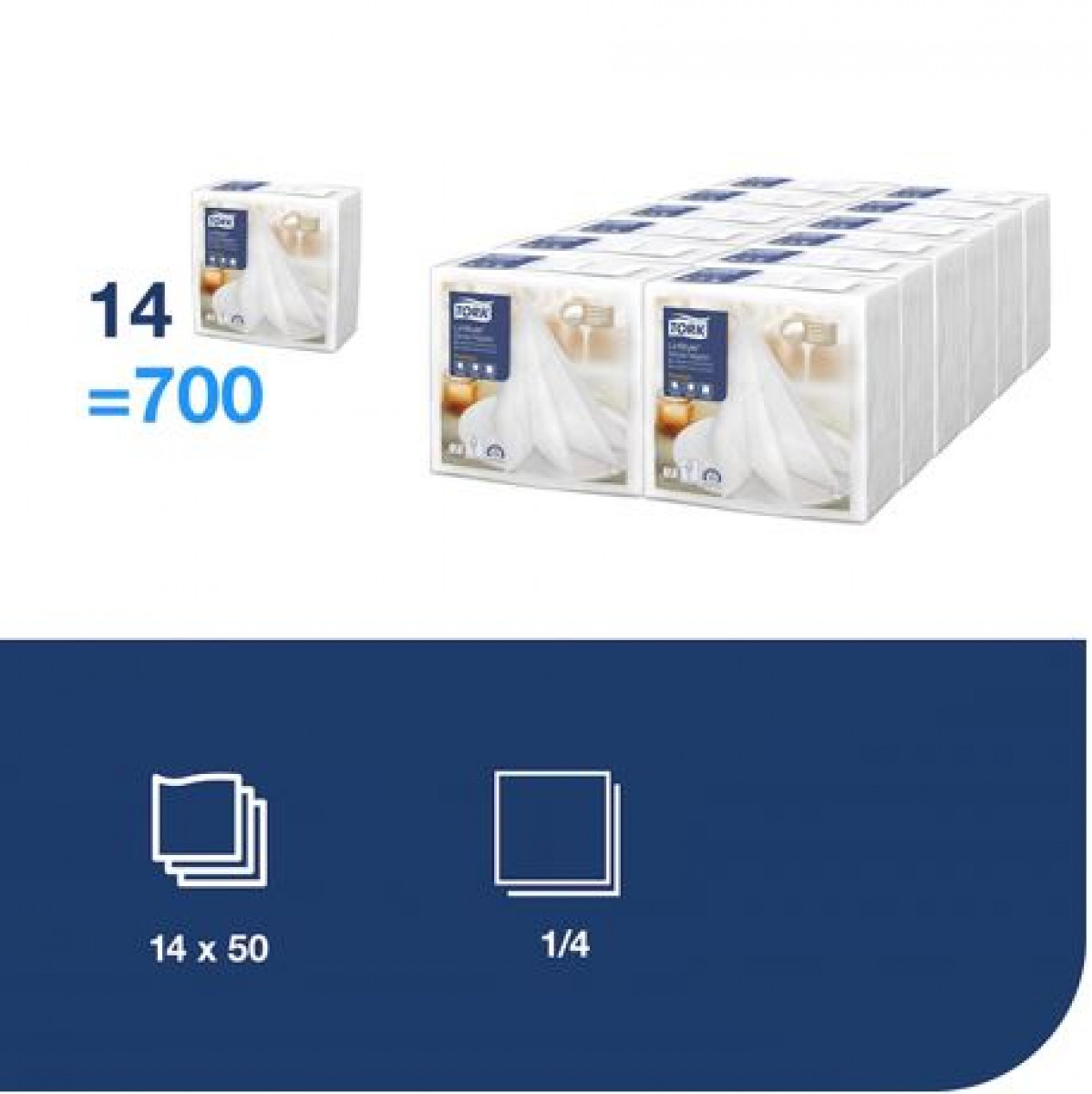 Stalo servetelės Tork Premium LinStyle, 39x39cm, baltos, sulankstymas 1/4, 1sl., 478722